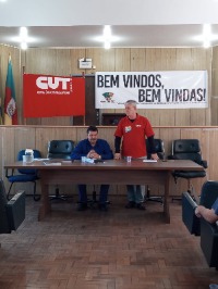 O Sindicato dos Trabalhadores no Calçado e Vestuário de Venâncio Aires e Mato Leitão participou ontem, dia 06, em Sapiranga/RS, do Seminário Campanha Salarial 2023/2024, organizado pela Federação Democrática dos Sapateiros do Rio Grande do Sul (Fedesargs). O objetivo do seminário é orientar os sindicatos com dados econômicos e jurídicos, trazendo informações do cenário mundial, nacional e também o cenário local. Assim, preparando o movimento sindical para a convenção coletiva 2023/2024. Estiveram presentes o presidente da CUT/RS Amarildo Cenci, asessores do DIEESE (Departamento Intersindical de Estatísitica e Estudos Socioeconômicos), assessor jurídico da Fedesargs e mais de nove sindicatos filiados. O presidente do Sindicave João Campos afirmou que foram muito esclarecedores os dados apresentados pelo DIEESE, o que ajudou a alinhar a categoria para a luta dos direitos dos trabalhadores e trabalhadoras nas convenções coletivas que se aproximam. “Logo será entregue o jornal informativo convidando todos e todas para a assembleia de construção de pauta para a convenção coletiva 2023/2024”, destaca João.